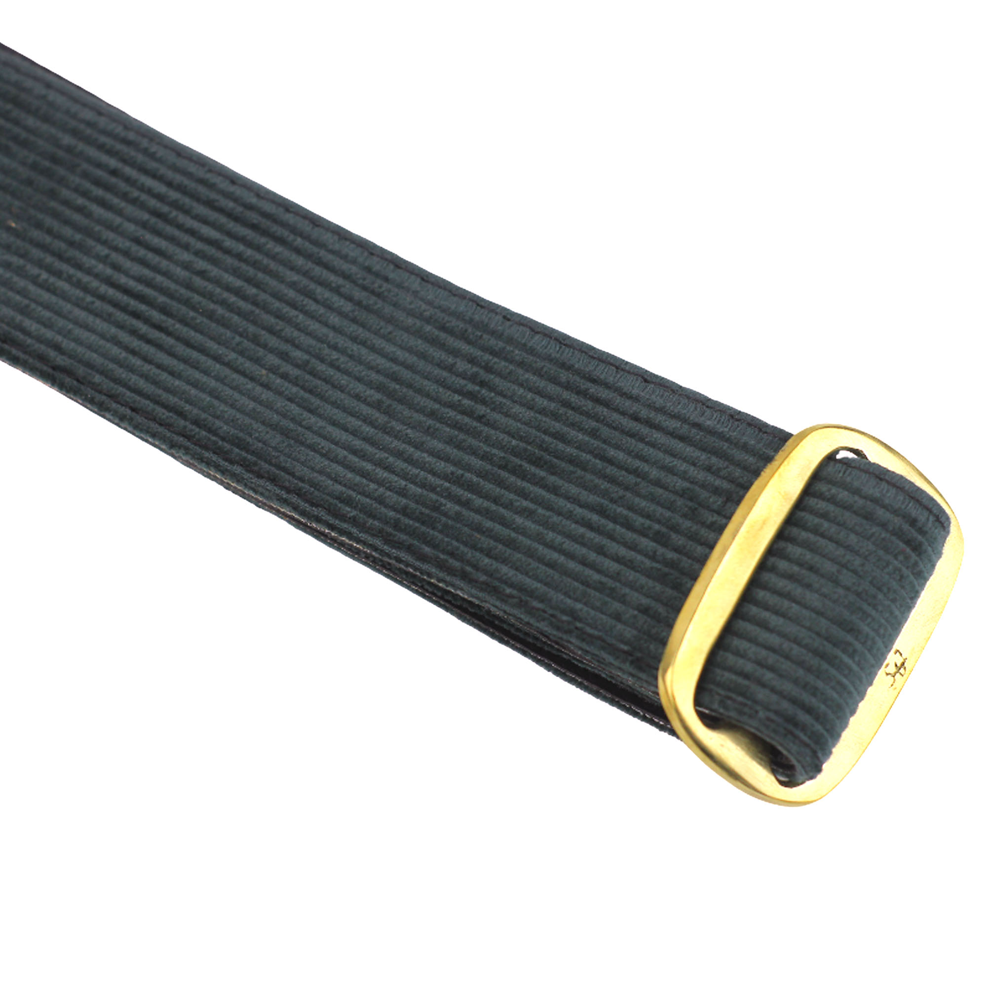 5 cm corduroy material. And genuine leather ends (SG logo emboss in leather) for absolute maximum strength and longevity. and metal tri-glide adjustment. Adjustable to 150 Cm