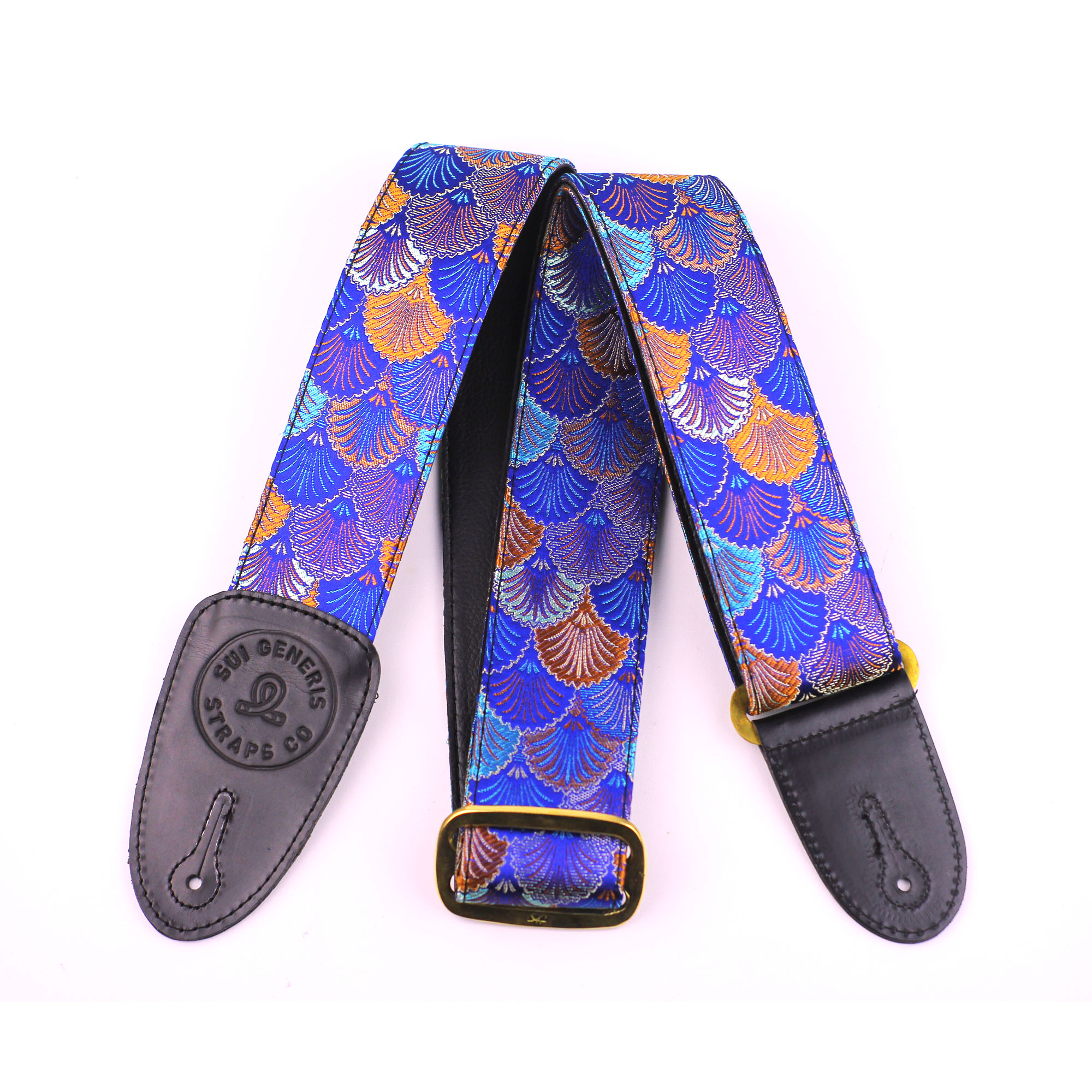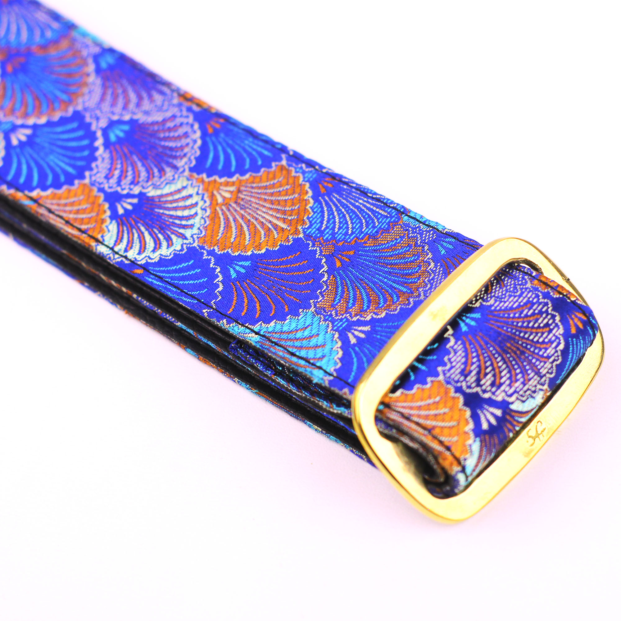 We use fabric from japenese motif. With witdh 5 cm And genuine leather ends (SG logo emboss in leather) for absolute maximum strength and longevity. and metal tri-glide adjustment. Adjustable to 150 Cm